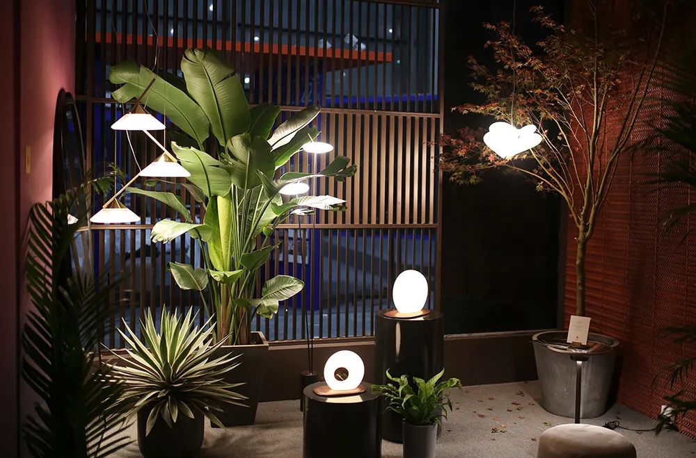 获奖的灯具们是现场的点睛之笔。。。。展馆入门右手边,,,,是曾拿下2019年度法国Muuuz国际设计大奖的方寸壁灯。。通过光在不同形态上的表达,,,,形成虚实结合的「墙」,,,是打卡出片的好点位。。。。