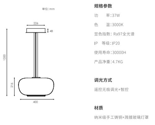 产品简介:手工吹制高硼硅玻璃,,圆润柔和;在内部的上路光透过玫瑰金色网格铸铜件投射出类似烛火的效果,,在空间里显得更加灵动,,,外层玻璃采用溅镀金属质感,,自下而上渐消,,,,同时镜面镀层折射环境光线,,使产品更加轻盈通透不压抑,,,下路光采用直下光,,,满足1.5米圆桌面充足照明。。。同时设计有防眩格栅,,桌面边缘的视线高度不会有直接光线照射到,,,体验舒适。。